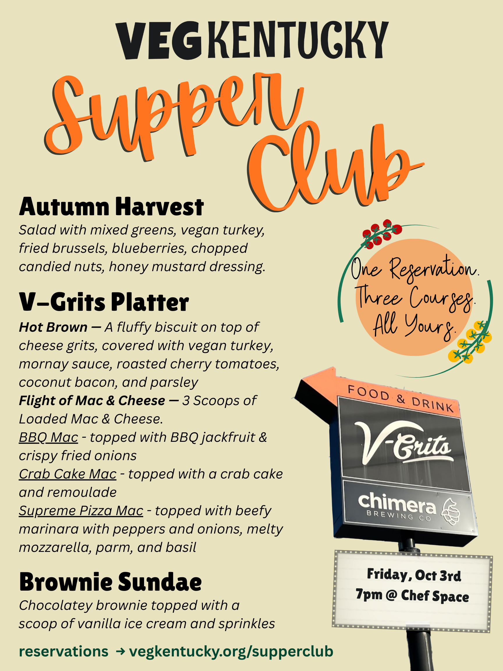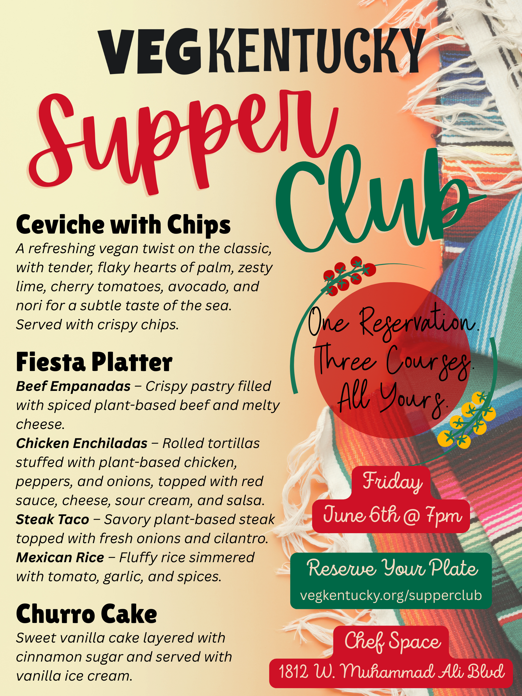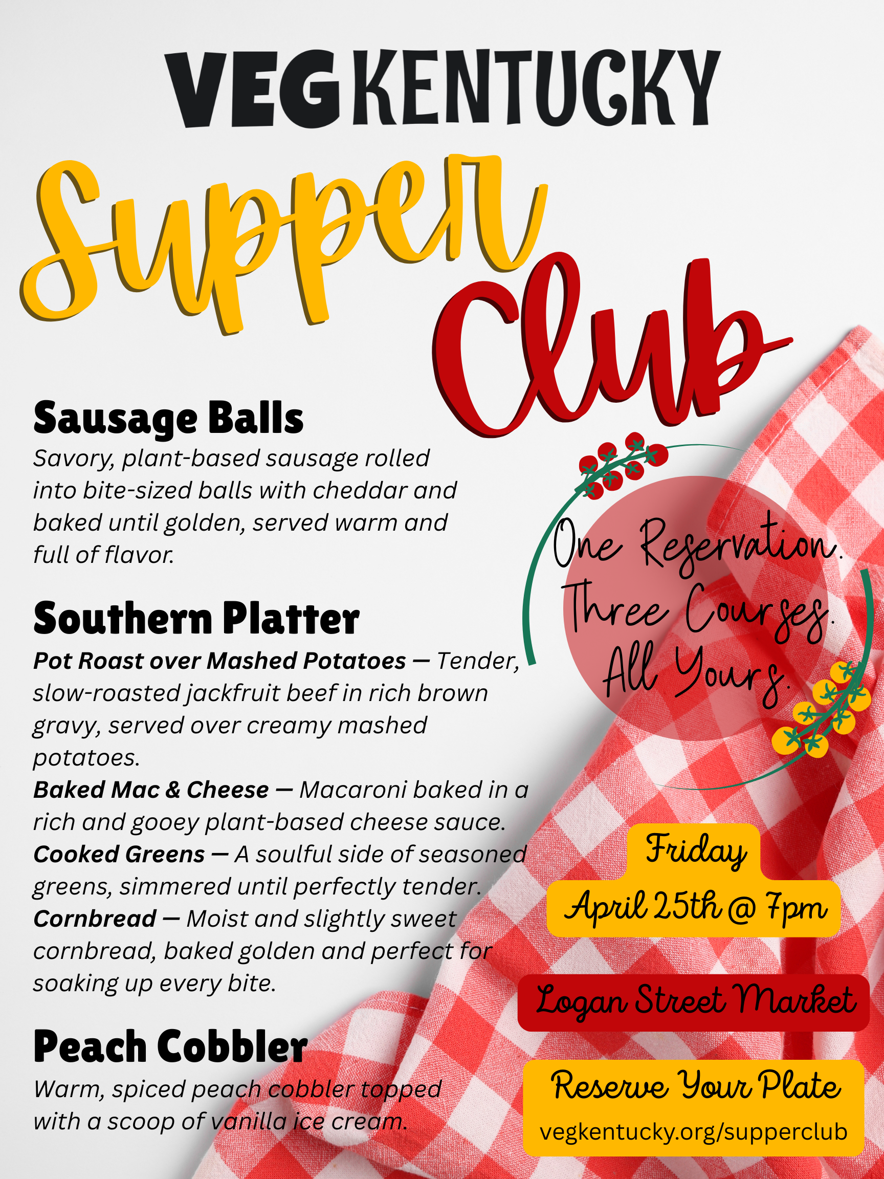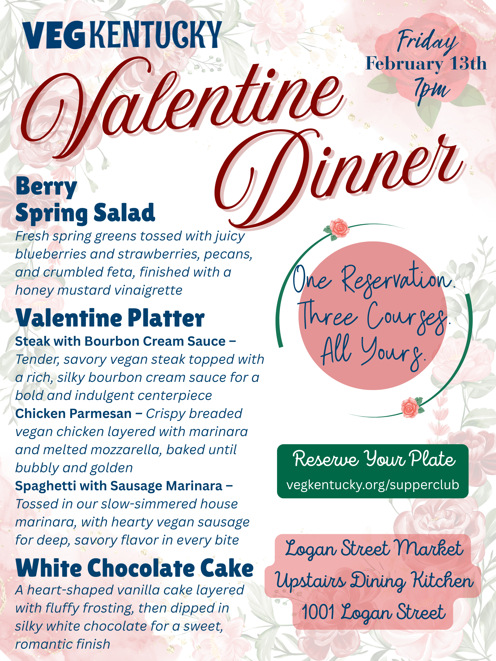 Join us for the Valentine Edition of VegKentucky’s monthly Supper Club, a cozy, community-centered dinner experience celebrating plant-based food, connection, and good causes.