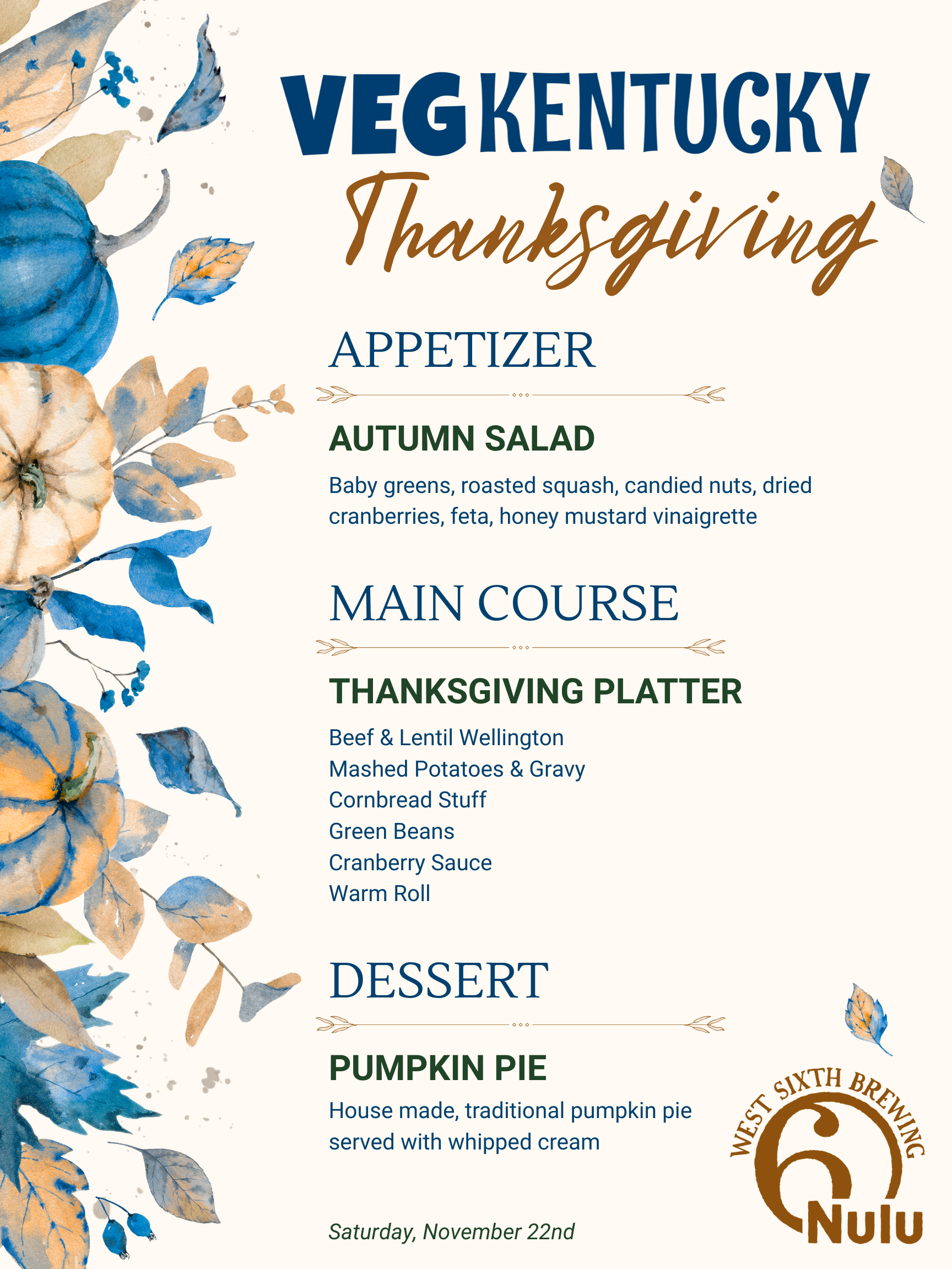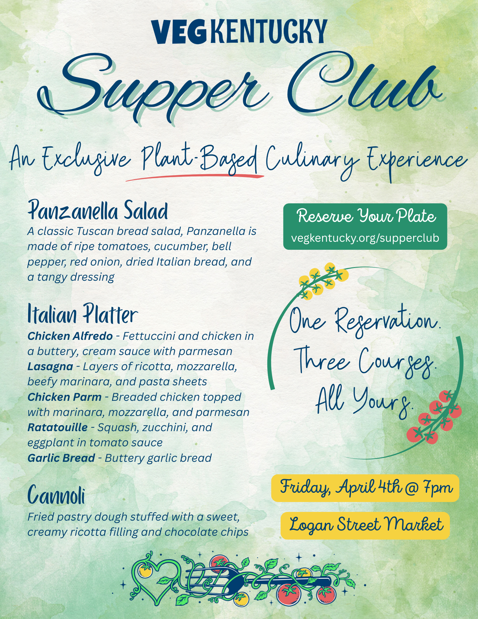 This dinner is designed for everyone - come solo, bring your sweetheart, or celebrate with friends. Every ticket purchased supports VegKentucky, a nonprofit organization working to make plant-based living more accessible for all.