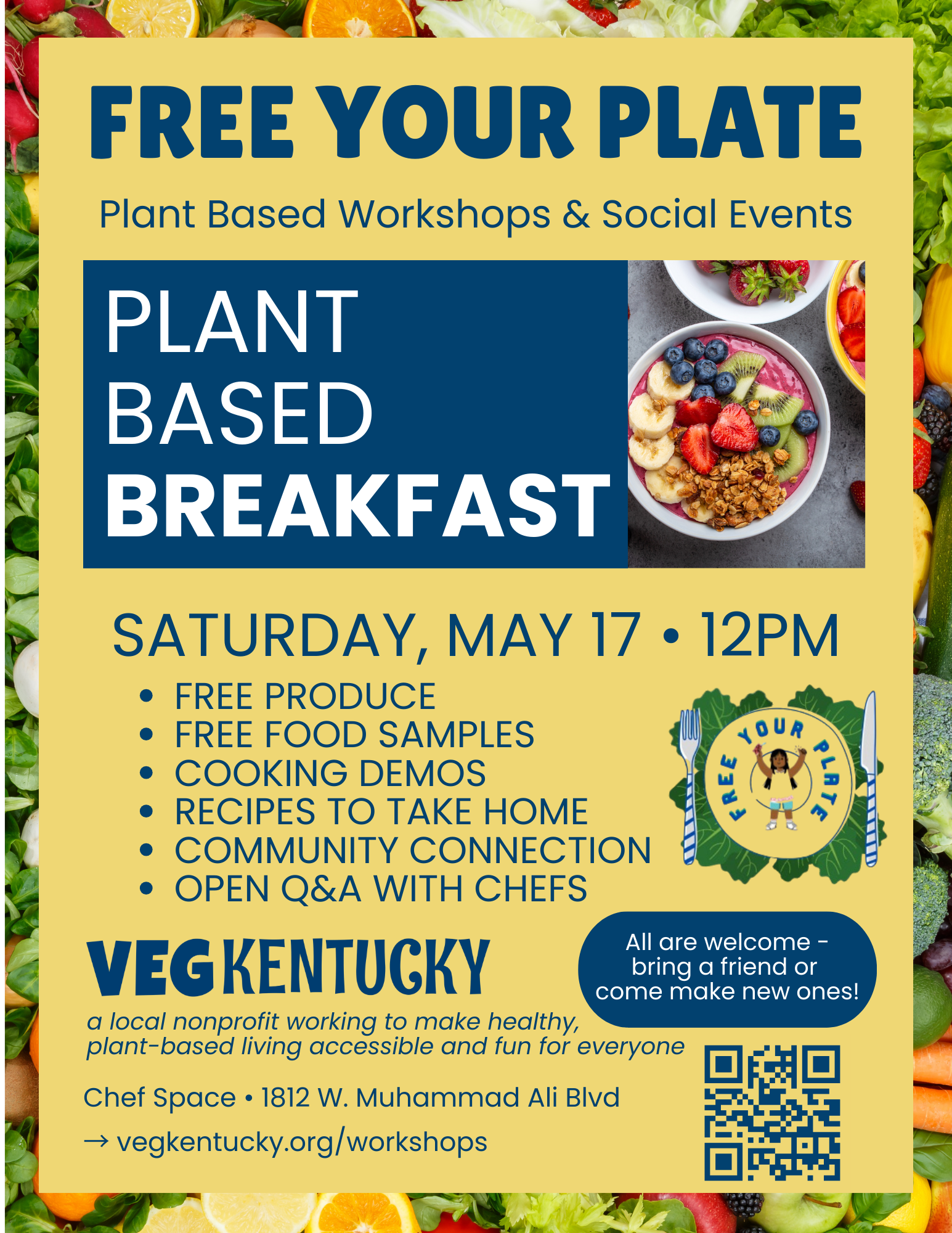 Start your day the plant-based way at our next Free Your Plate workshop—this time, we're serving up breakfast! Join us for a fun, free event filled with mini cooking demos, tasty breakfast samples, and easy-to-follow recipes to help you fuel your mornings with confidence. You’ll take home plant-based meal guides, free groceries, and plenty of inspiration. Whether you’re just exploring or already all-in, this is your chance to connect with a supportive community, ask questions, and experience the joy of plant-based eating—together.